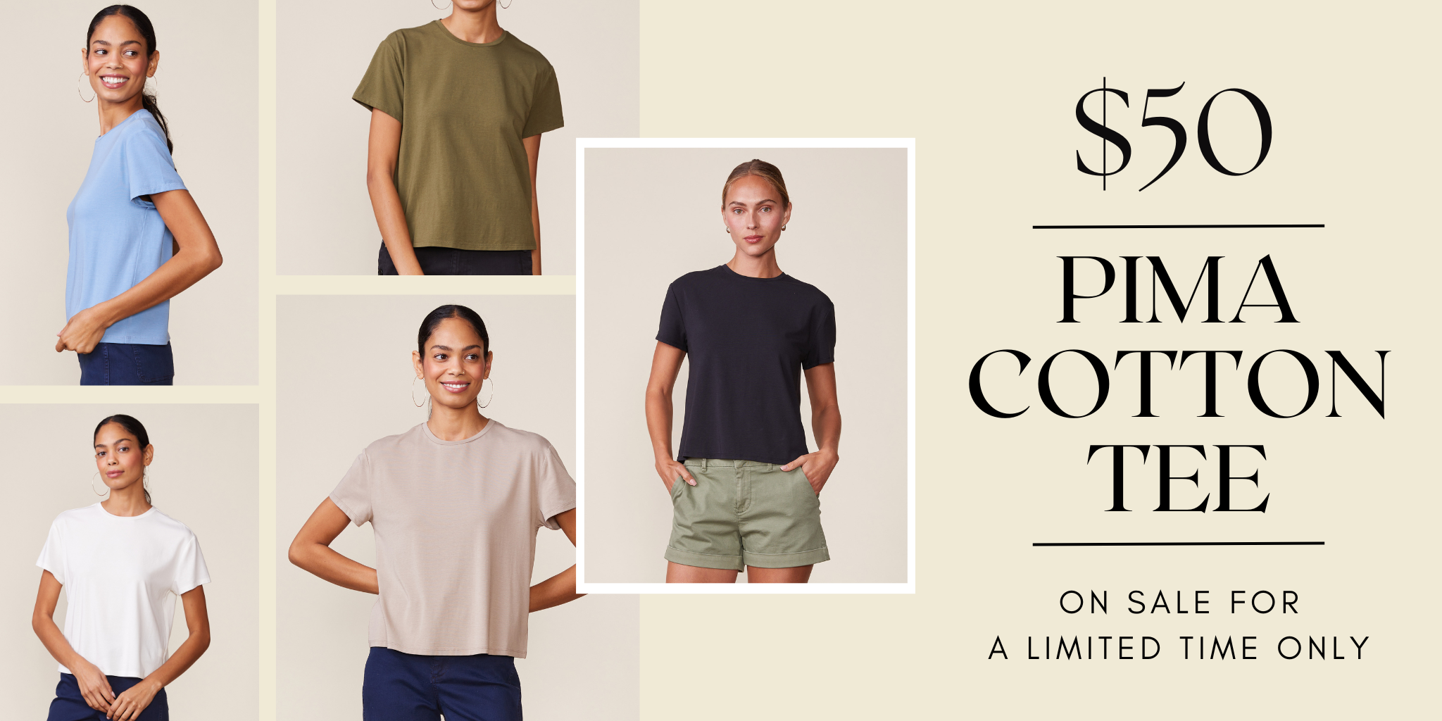 Meet your new favorite fabric: Pima Cotton. Crafted from exceptionally soft, high-quality fibers that feel smooth against the skin, it delivers everyday comfort with a refined finish. Lightweight, breathable, and designed with versatility in mind, our Pima Cotton Tee is the perfect closet staple to be worn alone or styled under your favorite pieces.