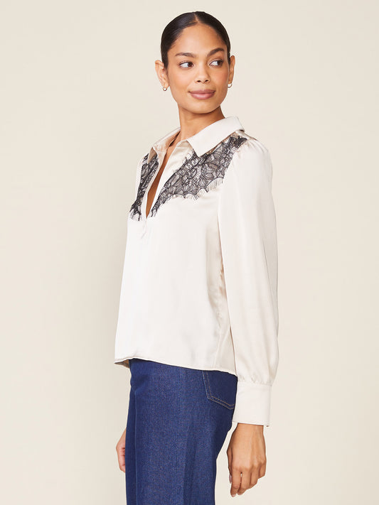 Lace Yoke Long Sleeve Satin Blouse