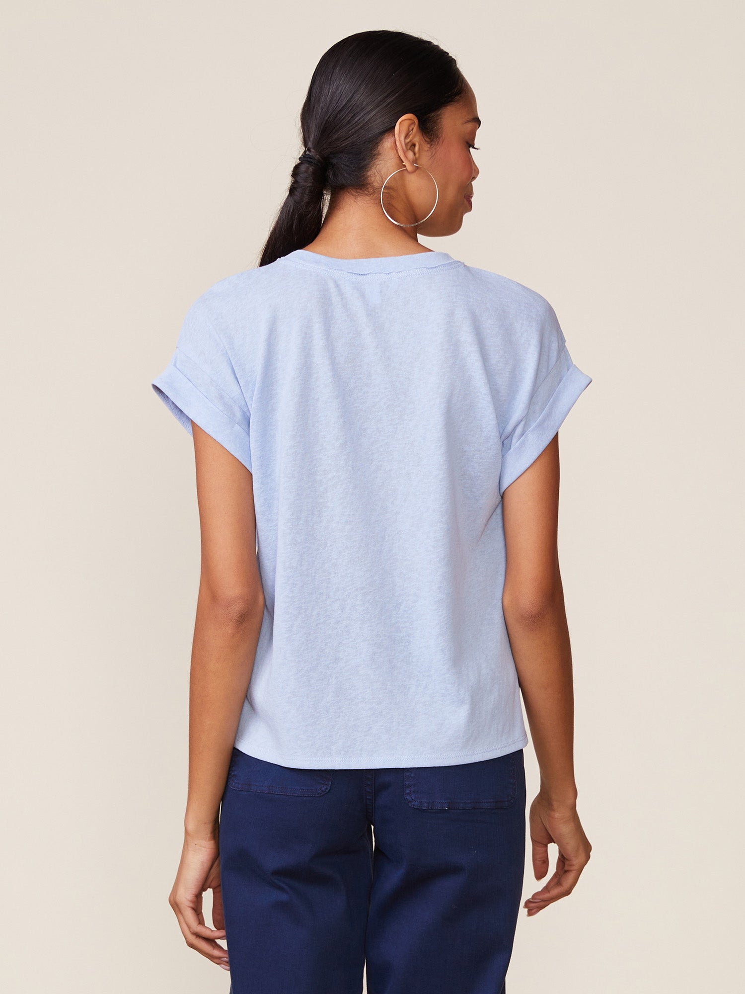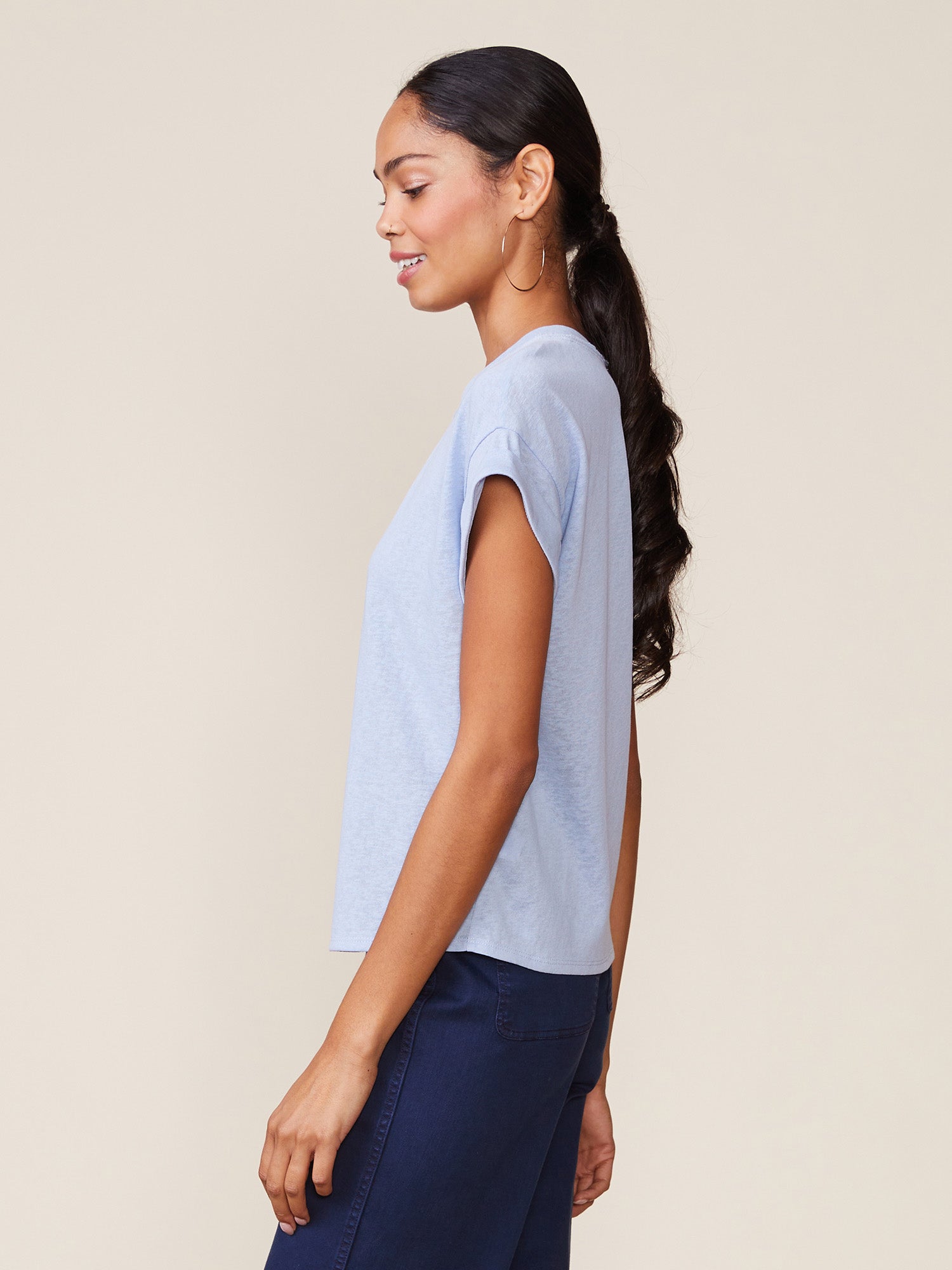 The Born to Run drop shoulder cuffed tee is one of our favorite must have tees for the season. Crafted in a cotton blend knit that mimics linen, this ANTHEM staple offers easier care with the same look and feel of linen. It's textured, lightweight and breathable pairing perfectly with any look and easy to layer.