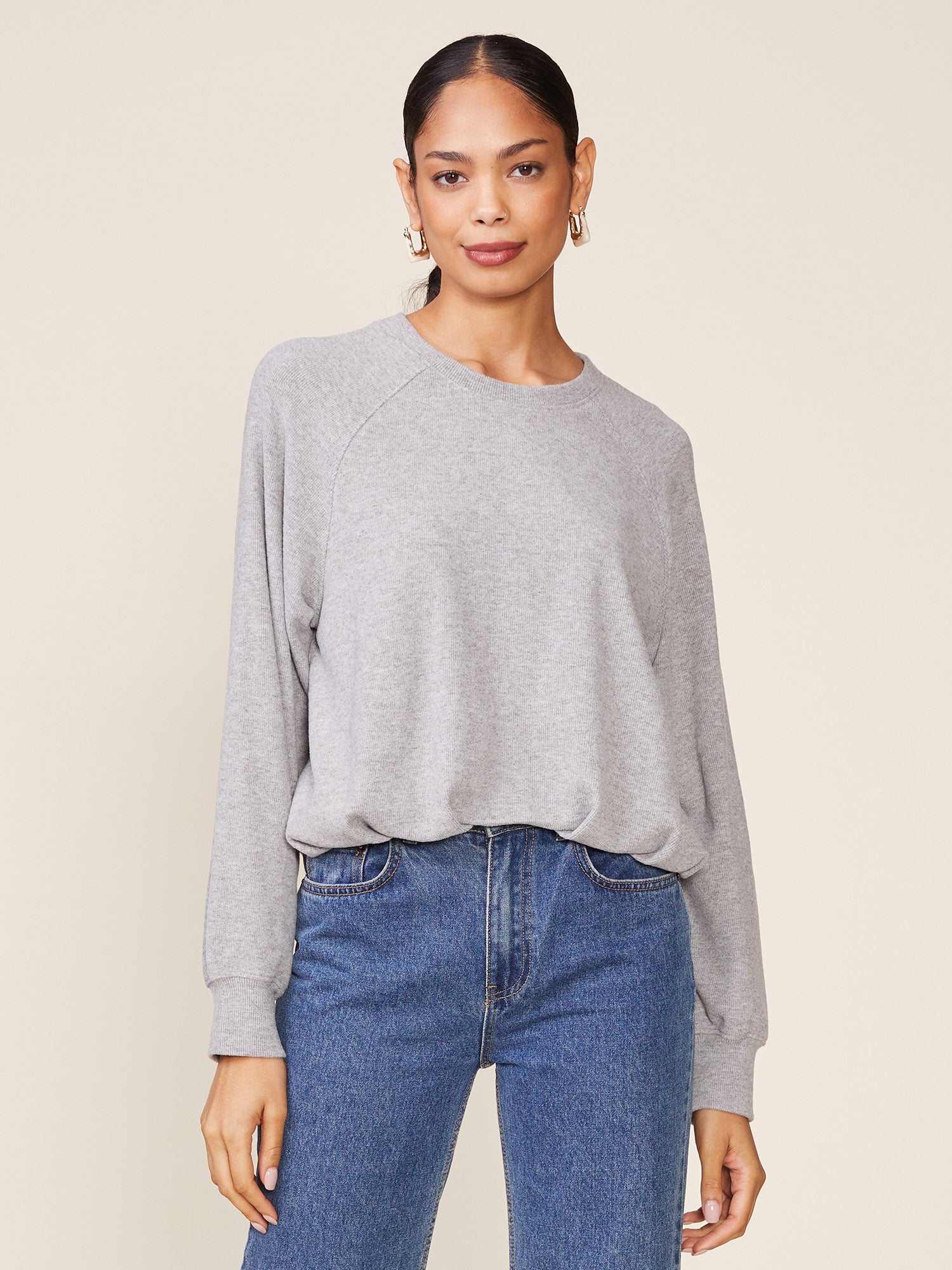 Cozy meets chic with this brushed rib raglan pullover, designed with a pleated bubble hem for a loose, voluminous silhouette. Ultra soft and effortlessly stylish, this pullover is the perfect everyday layering piece for chilly days and toasty nights.