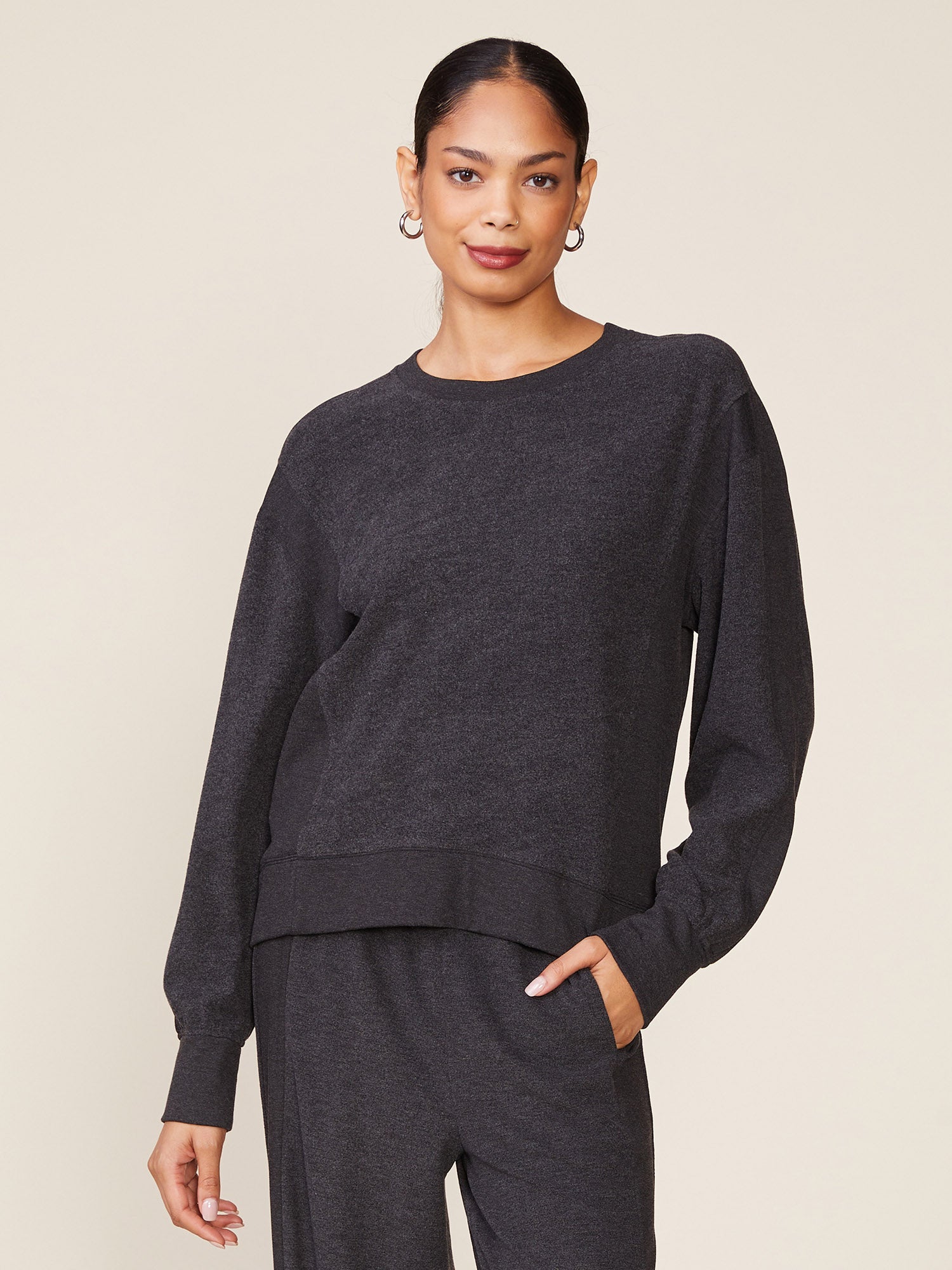 This classic crewneck pullover is made in our soft Duet fabric and features a contrast inset detail. This is the perfect layering piece for any season.