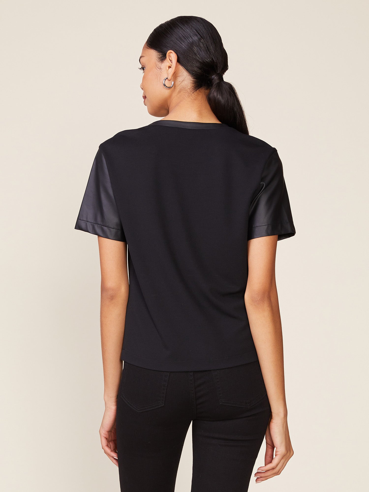 Vegan Leather Ponte Mix Short Sleeve Tee